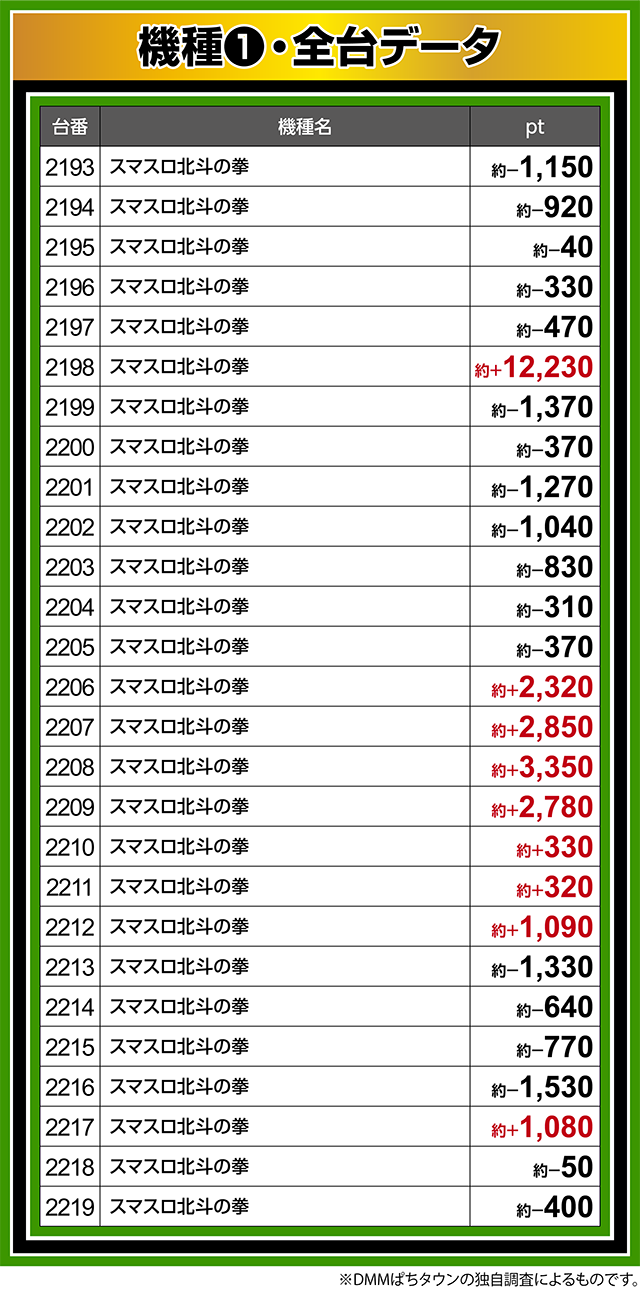 『スマスロ北斗の拳』の2198番台が約+12,000ptオーバー!!