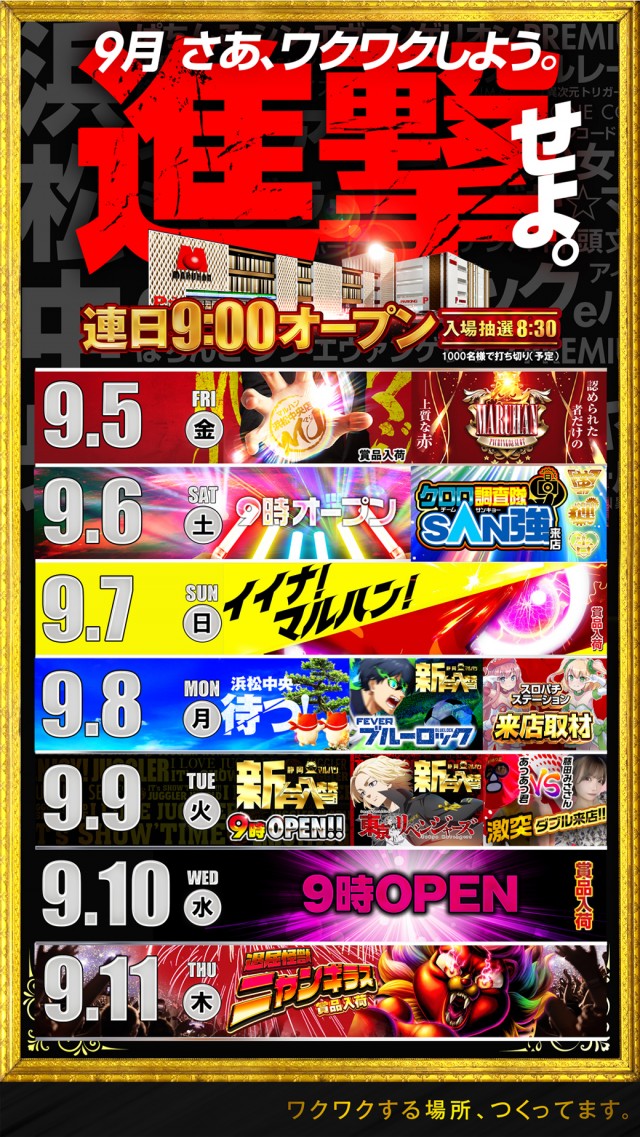9月5日(金)進撃せよ。朝9時オープン!
