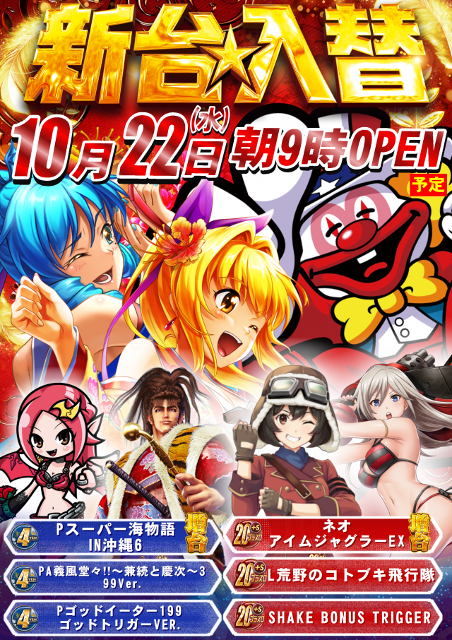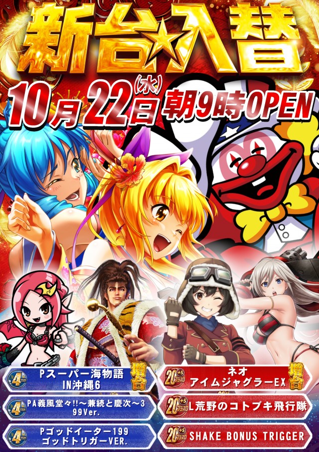 10月22日(水) 新台入替 ×【じゅりそん】さん来店実践☆