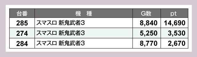『スマスロ 新鬼武者3』からは、14,000ptオーバーをはじめとする優秀台が3台誕生している。