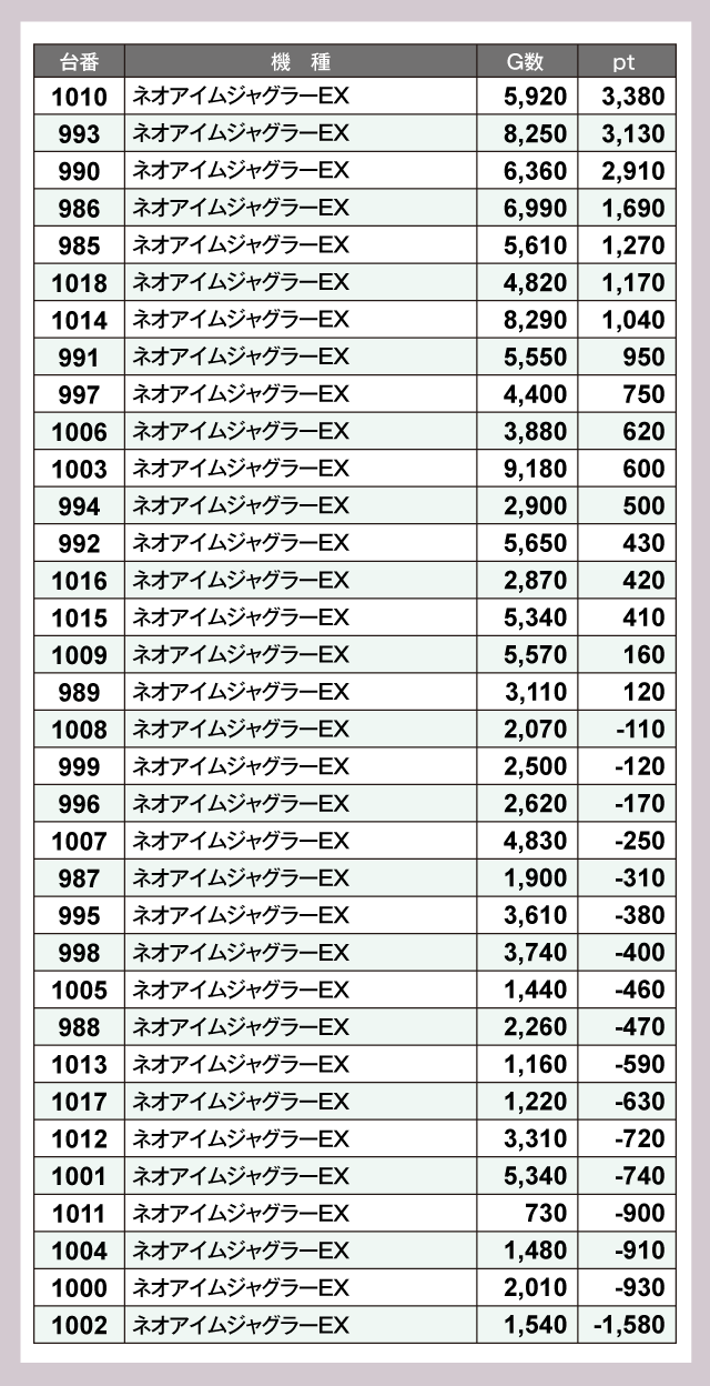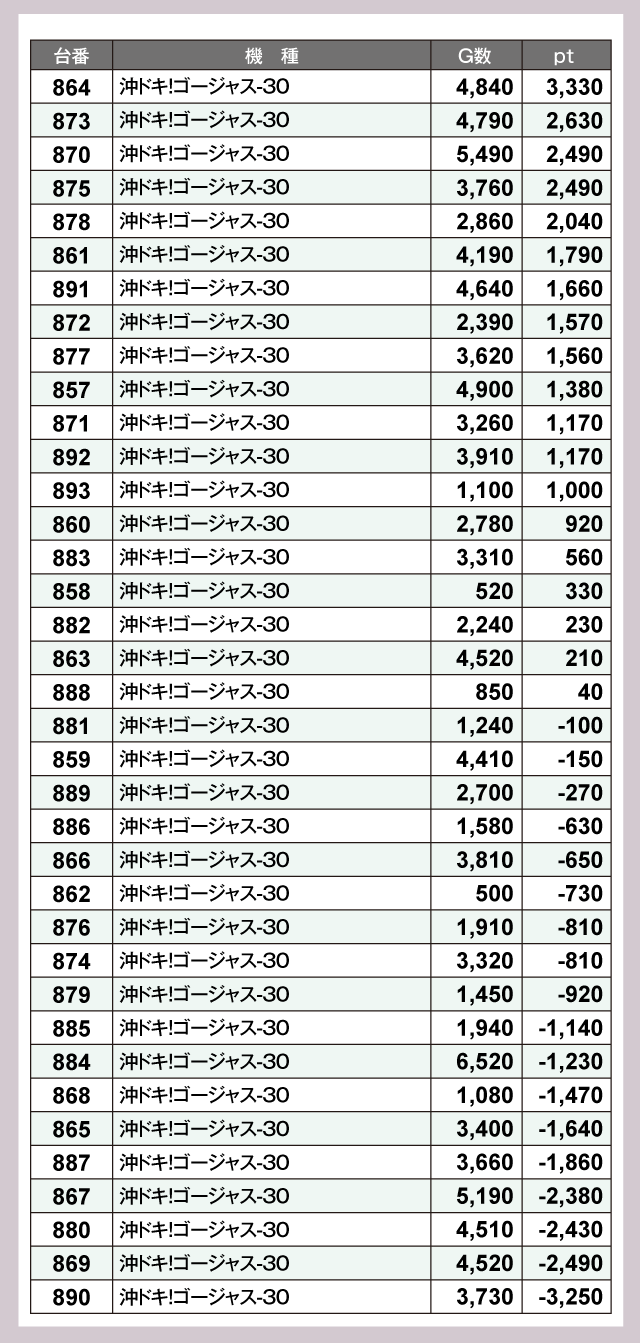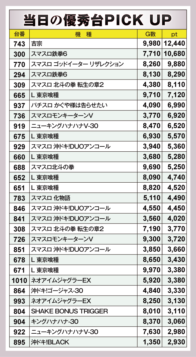 ※差枚pt順に掲載しています。