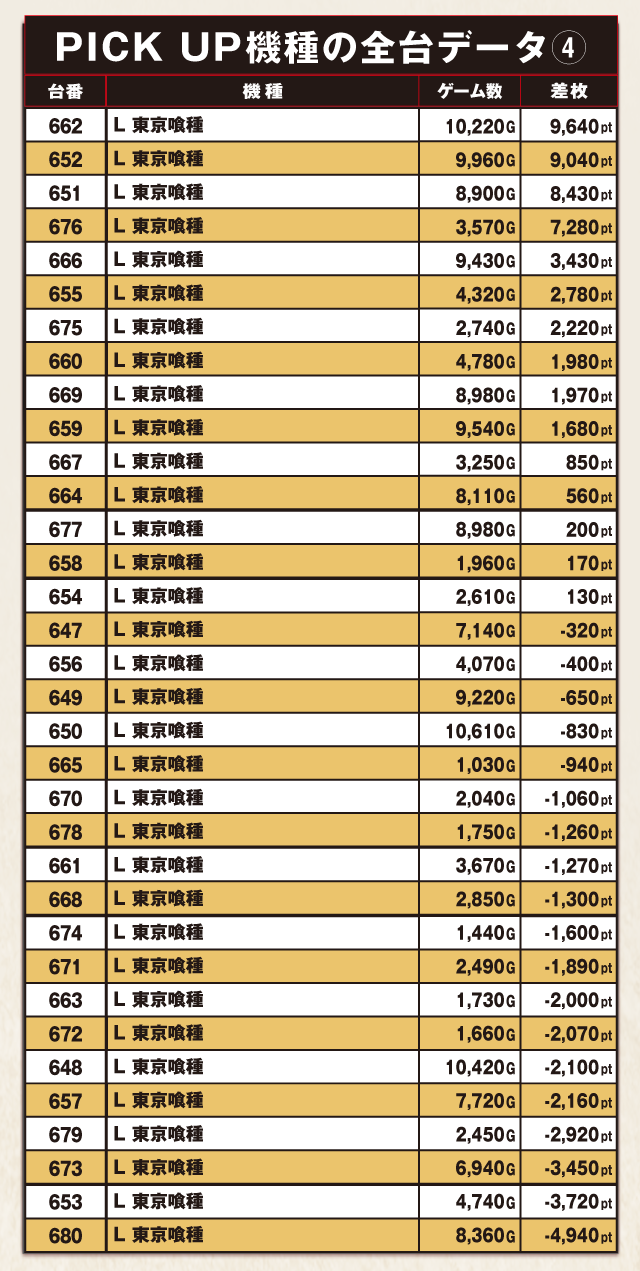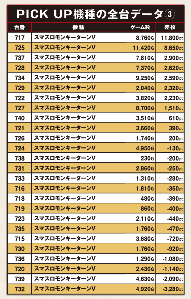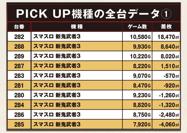 PiCK UP機種の全台データ