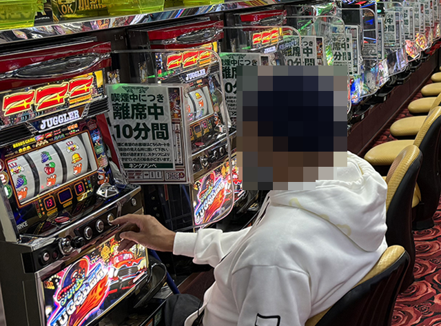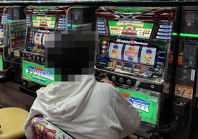 取材時のパチスロでは、「ゴーゴージャグラー3」や「ハッピージャグラーVⅢ」が楽しまれていた。