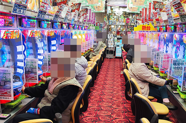 「P大海物語4スペシャル」や「Pルパン三世 銭形からの招待状 77Sweet Ver.」などに楽しげなプレイヤーがおり、雰囲気は明るい。