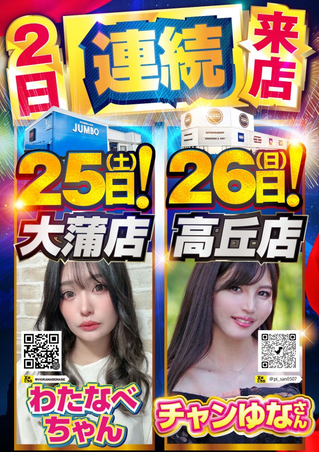 明日10月26日(日)新台入替2日目!ちゃんゆなさん来店!