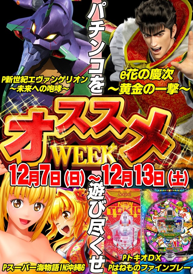 明日12月6日(土)新台入替 朝9時オープン!