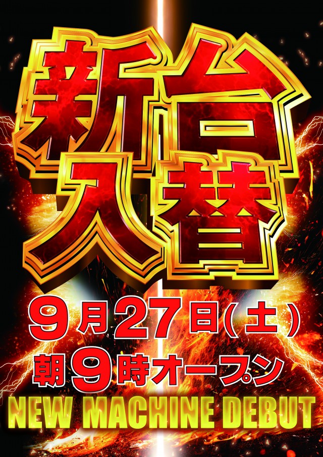 本日9月27日(土)新台入替 朝9時よりオープンいたします!