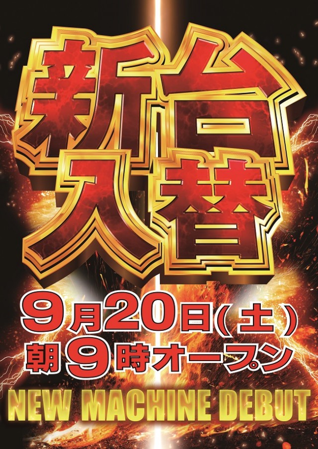 本日9月21日(日)新台入替2日目 朝9時オープン!