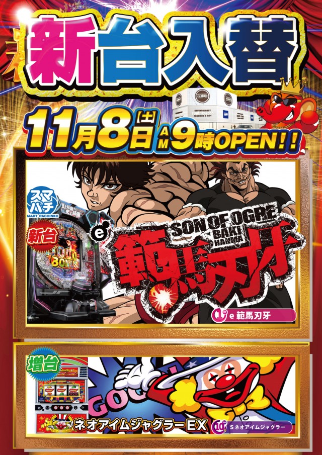 本日11月8日(土)新台入替 是非ご来店下さい!