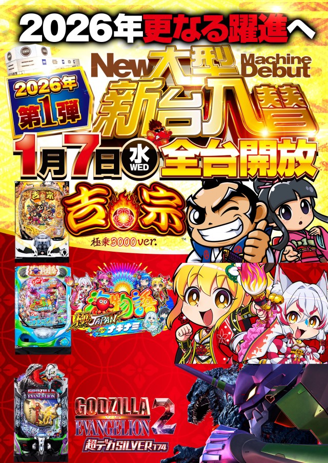 本日1月7日(水)新春初新台入替!本日最新台稼動開始!