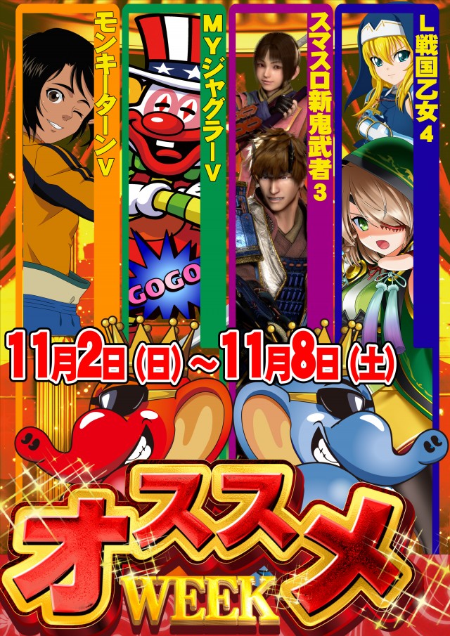 明日11月1日(土)月初め新台入替 朝9時よりスタート!
