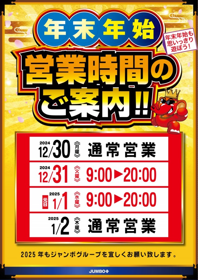 明日12月28日(土)新台入替2日目 朝9時オープン!