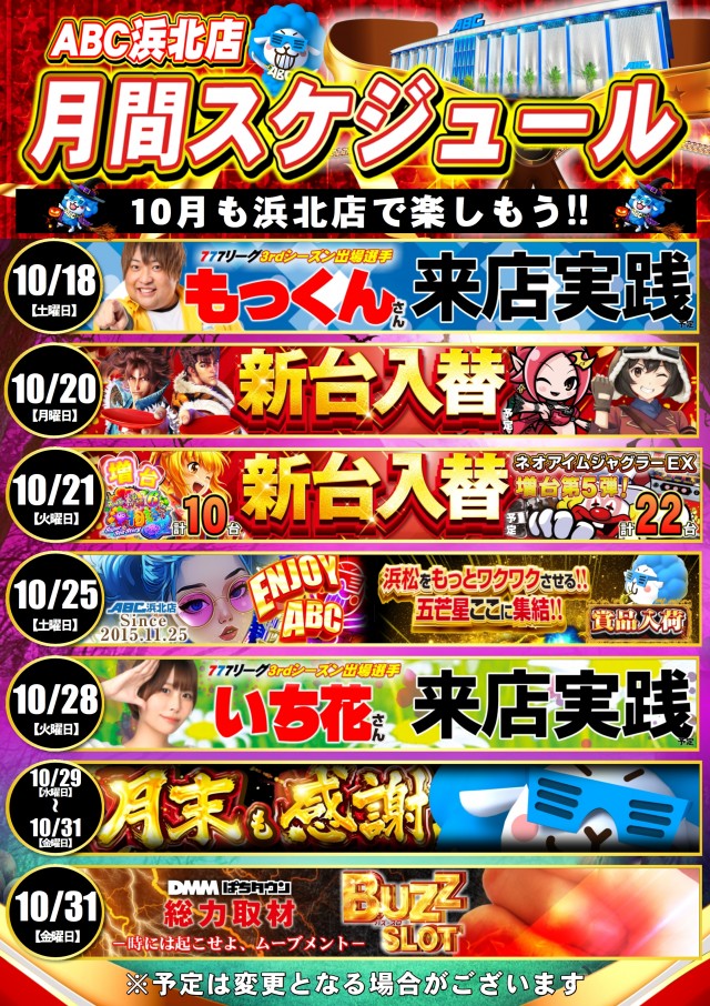 明日10月25日(土)エリア合同賞品入荷&ENJOY ABC
