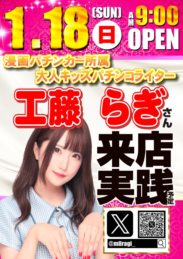 明日1/18(日)★工藤らぎさん来店実践★是非ご来店下さい