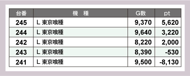 さらに『L 東京喰種』も負けていない。+5,000ptを超える好調台も見られ、シマ全体に微笑ましい光景が広がっていた。