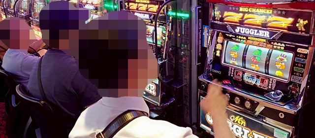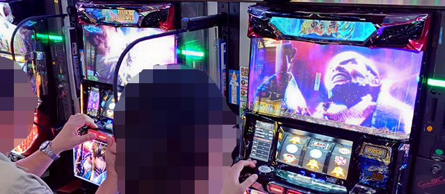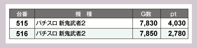 『パチスロ 新鬼武者2』は設置されている2台ともがプラスpt。打っているプレイヤーは笑顔で打ちこんでいたようだ。