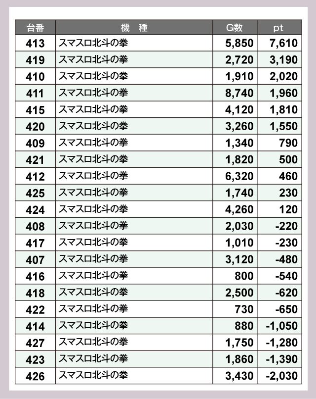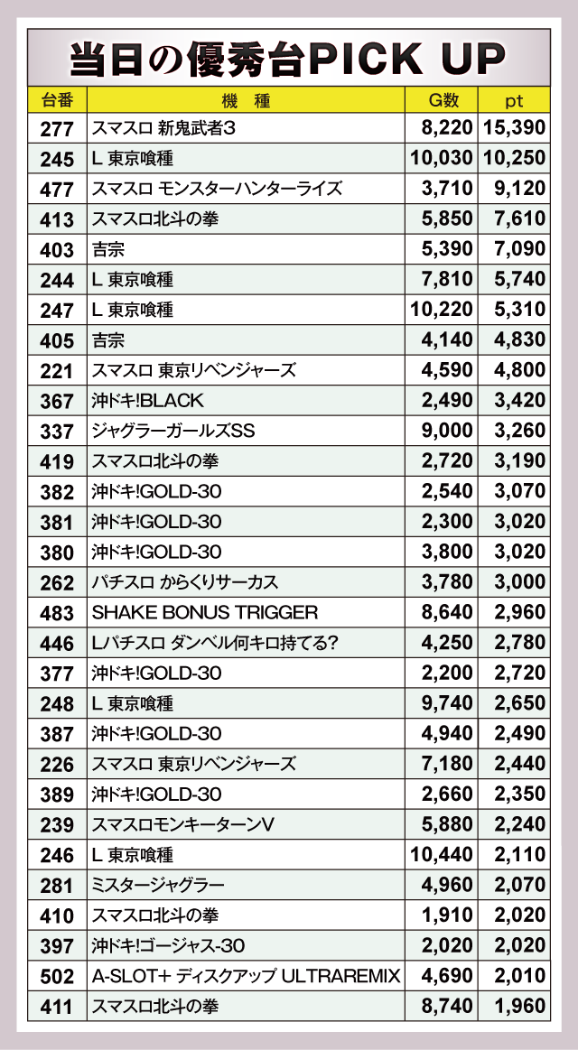 ※差枚pt順に掲載しています。