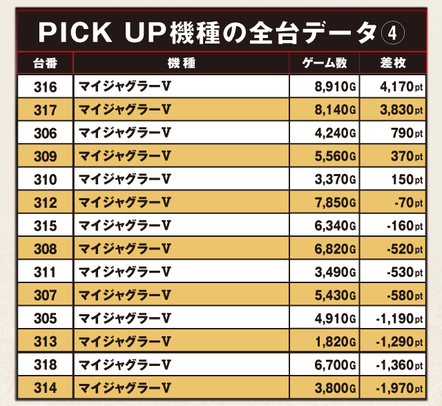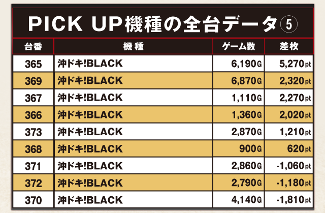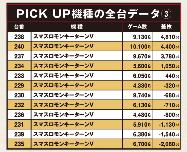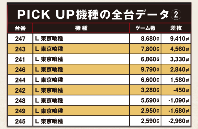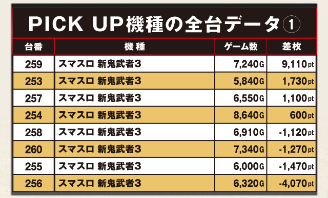 PiCK UP機種の全台データ