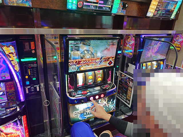 パチスロをみてみると、「スマスロ モンスターハンターライズ」に機種のおもしろさを味わえているといった姿があった。