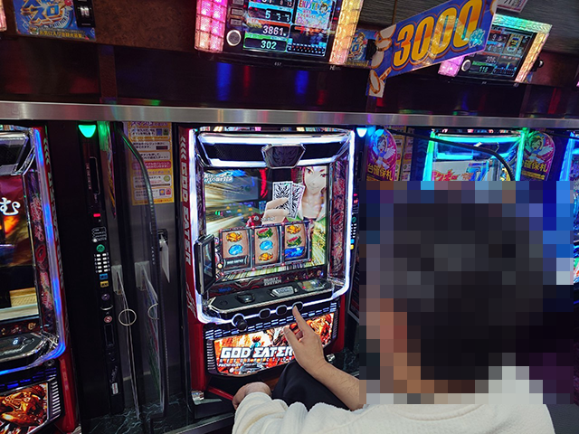 「スマスロ ゴッドイーター リザレクション」でも、プレイヤーは笑顔で遊技中。