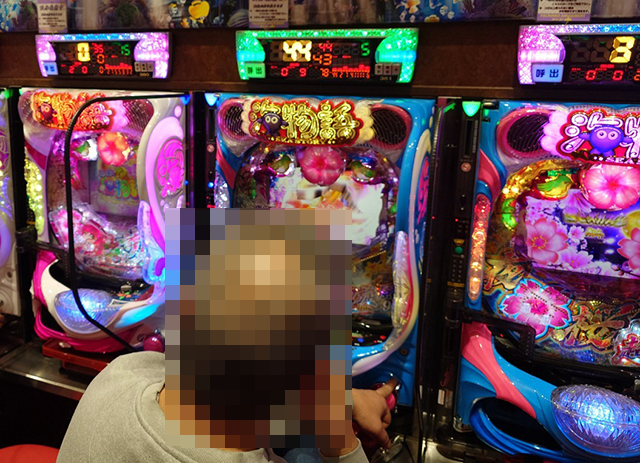 「ニューパルサーSP4 with 太鼓の達人」にも1箱以上の持ち玉を使い、うれしそうに遊技をおこなっている姿があった。