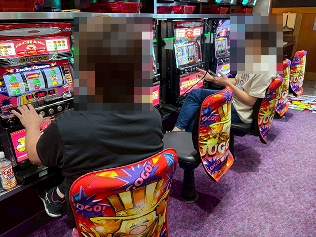 「ファンキージャグラー2」や「ゴーゴージャグラー3」などに、晴れやかな表情で遊技をおこなっている姿があった。