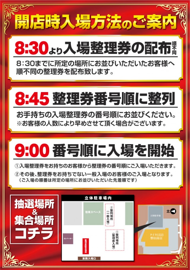 順不同の整理券配布(8時30分までにお並び頂いた方)それ以降は先着順です |