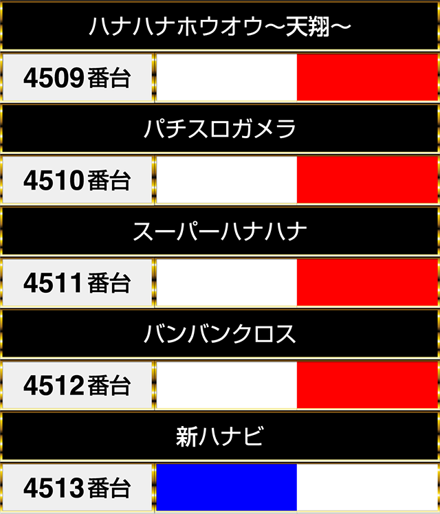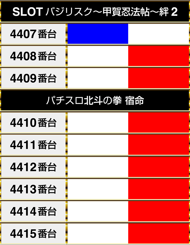 となりにある『SLOTバジリスク~甲賀忍法帖~絆2』の2台をあわせると、8台が並んでプラスptとなった。