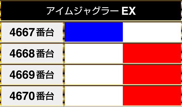 『アイムジャグラーEX』は3台が並んでプラスptを記録!