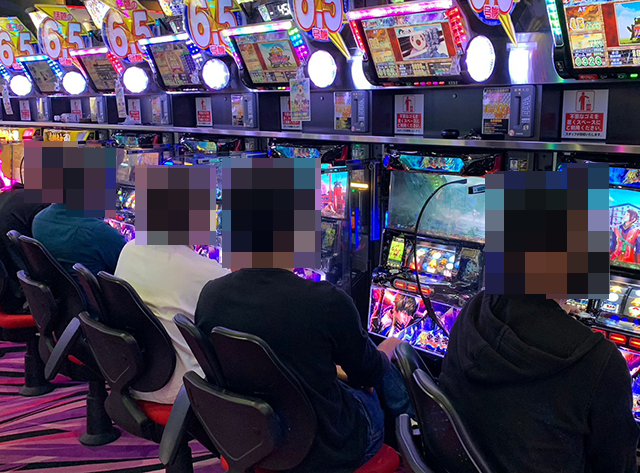 7台設置の『パチスロ バイオハザード7 レジデント イービル』は4台にプラスptが並んだ。