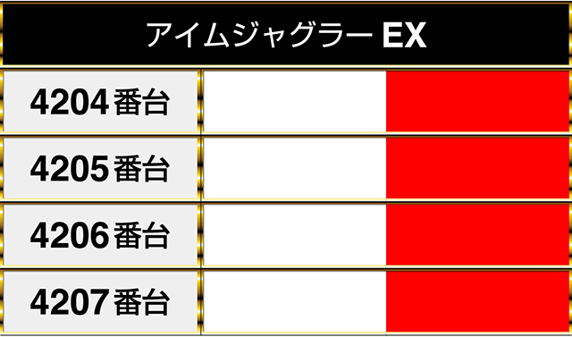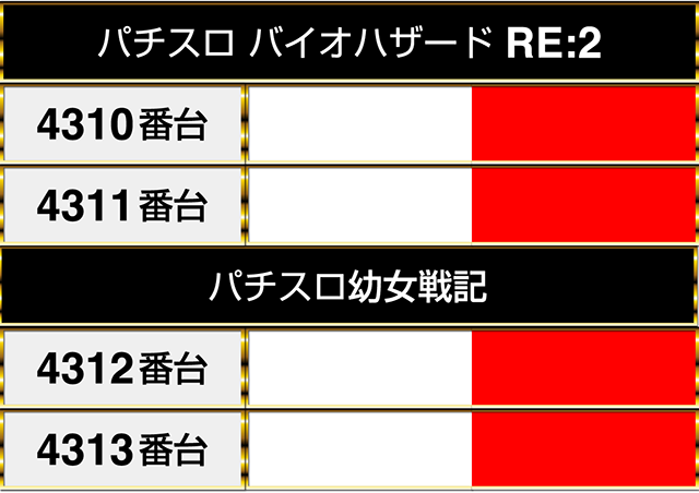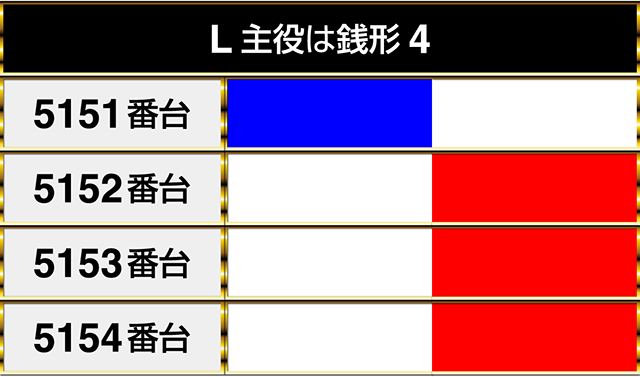 『パチスロ甲鉄城のカバネリ』の4302番台から4305番台までが並んでプラスptを記録!!