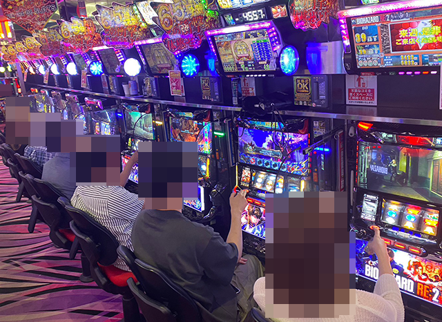 おなじシマにある『パチスロ 新鬼武者2』や『パチスロ バイオハザード RE:2』、『パチスロ幼女戦記』にも楽しげな姿が並び、大きく盛り上がっていた。