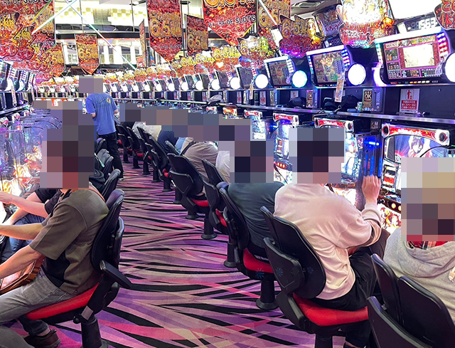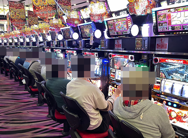 夕方頃に確認したときには、遊技を満喫しているようなプレイヤーが並んでいた。