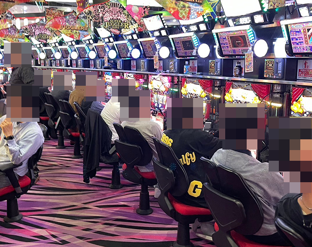 ジャグラーシリーズで遊技をおこなっているプレイヤーも表情は明るかった。
