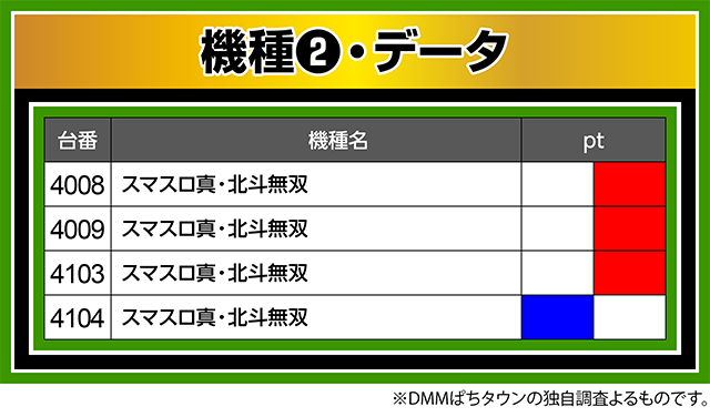 『スマスロ真・北斗無双』も4009番台や4103番台がプラスとなった。