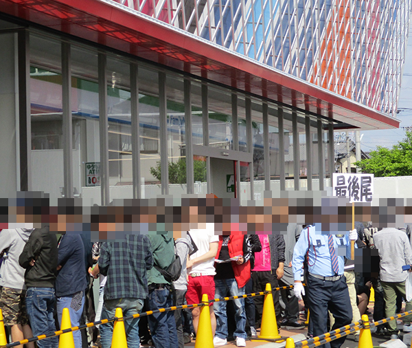 REAL取材Ωの2日目となる5月2日は、開店前から約400人のプレイヤーが集合。大きな声で整列の案内をしているスタッフの存在も印象に残っている。