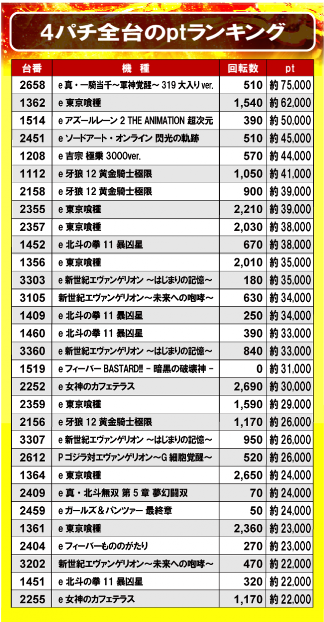 ②4パチ全台のptランキング