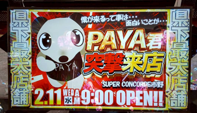 2月11日、来店時には大きな盛り上がりをみせると噂のオリジナルキャラクター「PAYA」が『SUPER CONCORDE市野』に来店!取材時は既に多くのファンが集結し賑やかな状況となっていたが、どのような展開が繰り広げられたのか!?早速詳細データを確認していく!