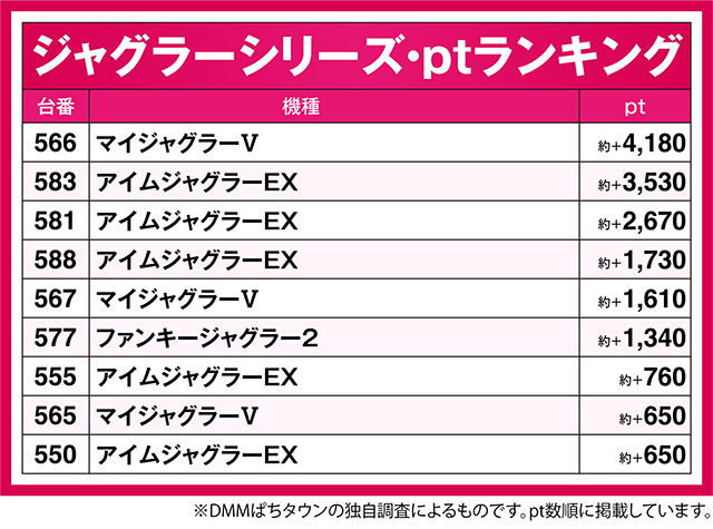 「マイジャグラーⅤ」の566番台が約+4,180pt!