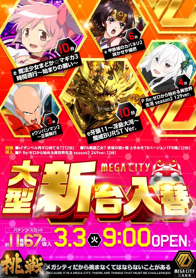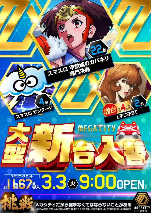 静岡県内東部で「四天王決戦」『カバネリ』にドル箱連発!12月12日(火)に静岡の東部マルハン4店舗で実施された「四天王頂上決戦取材」。その対象店のひとつ『マルハンメガシティ三島駿東』にてデータ調査を敢行した。 パチンコ・パチスロ合わせて総設…