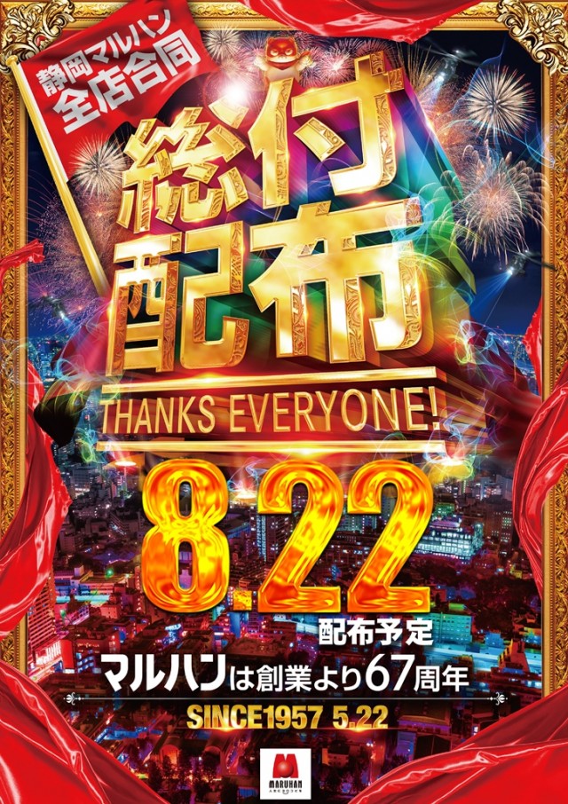 【静岡マルハン合同】明日22日日頃の感謝を込めて総付配布予定
