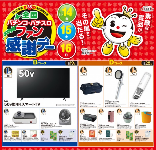 1位 11月6日(木) 2位 11月15日(土) 3位 11月16日(日)