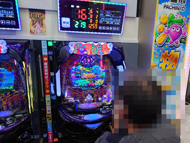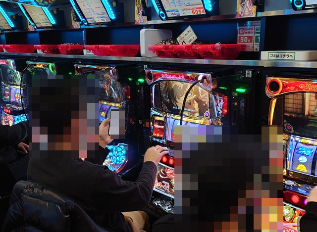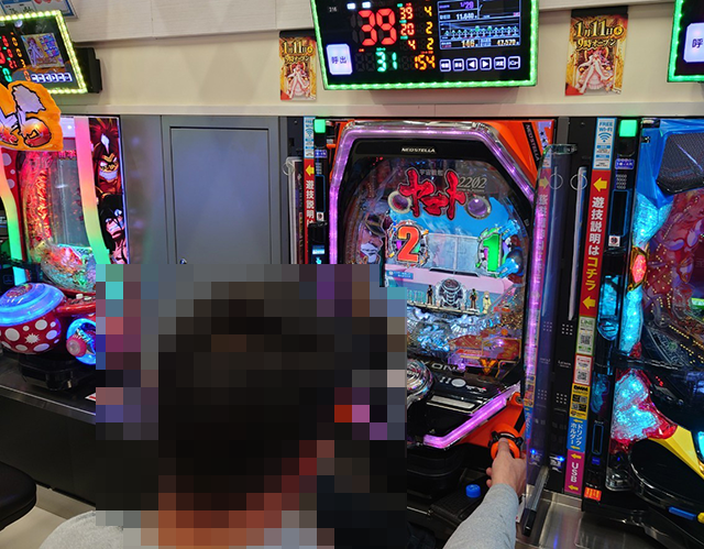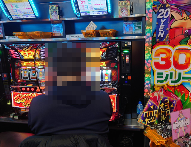 「パチスロ甲鉄城のカバネリ」にも3箱以上の持ち玉を使い、うれしそうに遊技をおこなう姿があった。