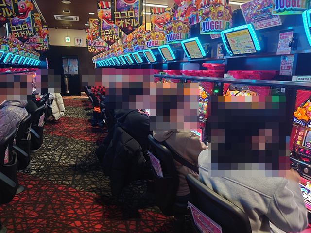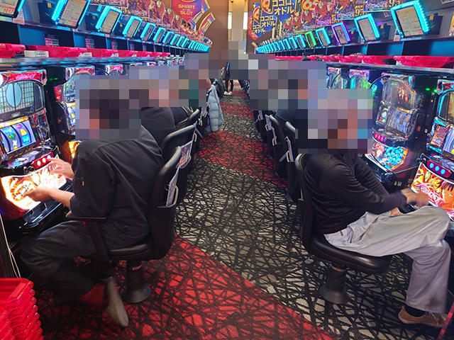 「マイジャグラーⅤ」への支持も厚く、シマ内の活気は大きい。