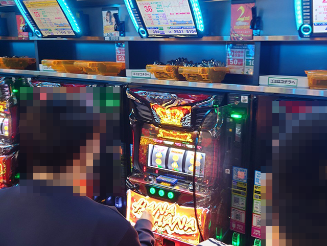 笑顔で遊技をおこなっているプレイヤーを、ハナハナシリーズでも目撃。