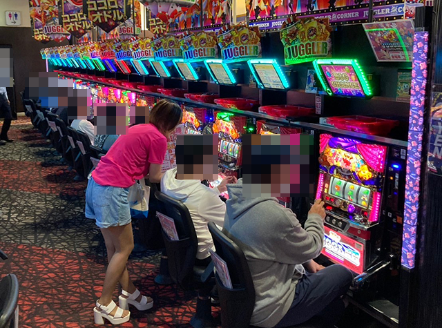 『マイジャグラーⅤ』や『ハッピージャグラーVⅢ』などが支持を集め、シマ内には華やかな光景が広がっていました。