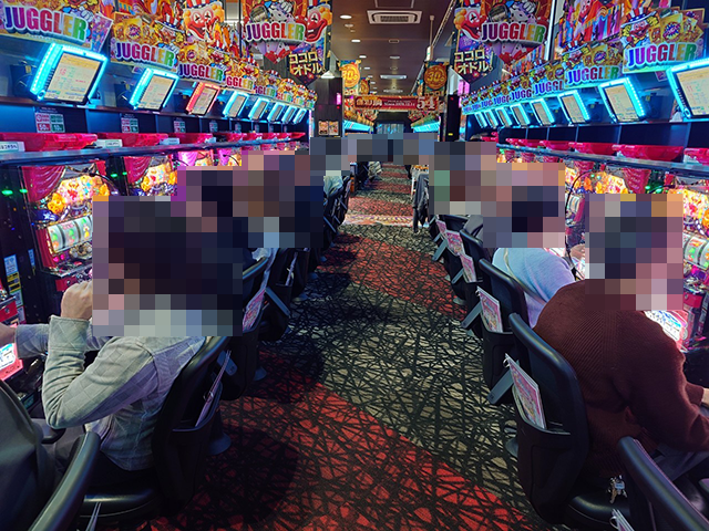 ホールには多くのプレイヤーが集まっており、パチンコとパチスロの両方から活気が感じられた。