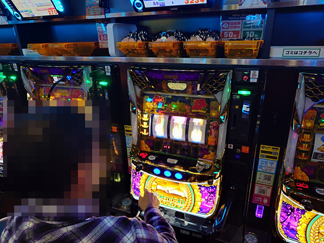 沖スロにて、プレイヤーの笑顔が輝いてみえる台を確認。