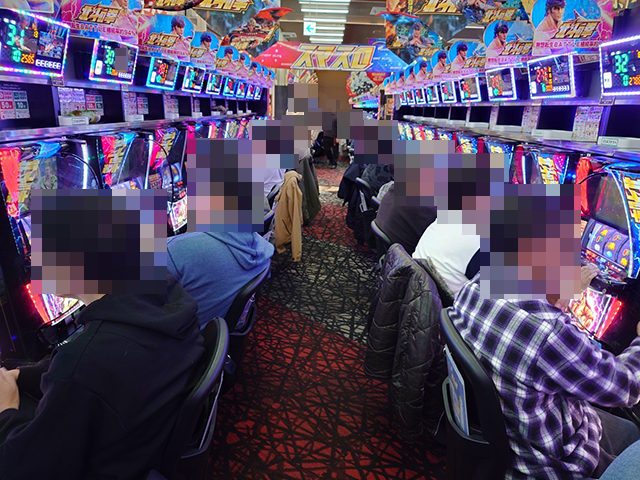 パチスロをみてみると、機種のスペックに関係なく、あちこちがにぎわっていた。