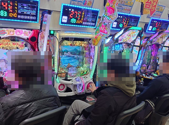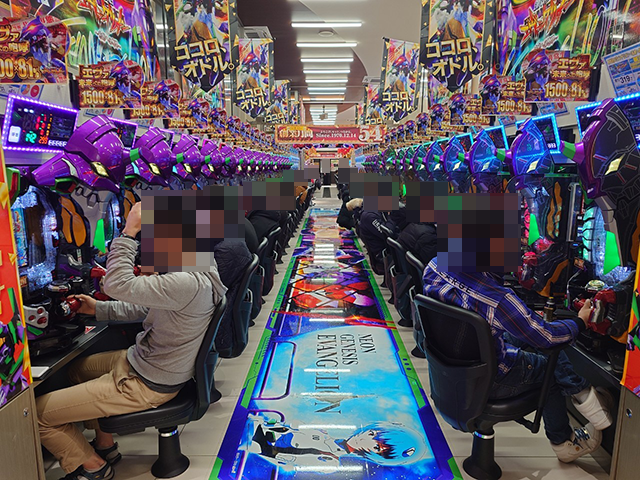 パチンコをみてみると、「新世紀エヴァンゲリオン~未来への咆哮~」が人気となっており、シマ内はにぎやかなムード。